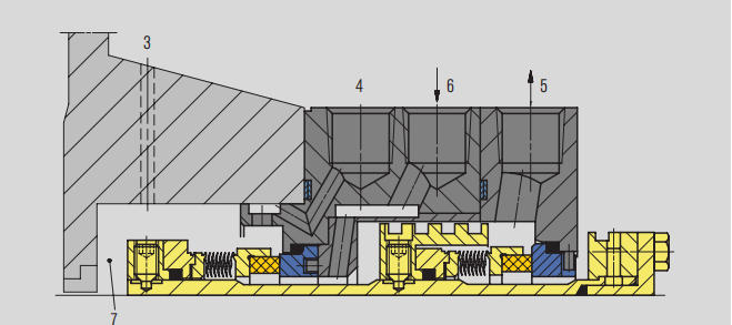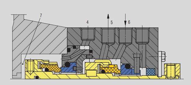Maakt gebruik van stroomregelopeningen om de stroom spoelvloeistof naar de mechanische afdichting te beperken.